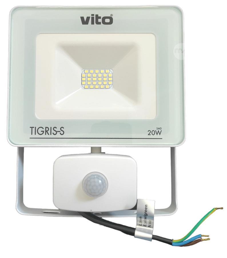 Outdoor LED spotlight with motion sensor 20W cold light Vito The Vito outdoor LED spotlight with motion sensor is an ideal solution for the external lighting of courtyards, gardens, entrances and car parks.With a power of 20W, this spotlight offers an intense and bright cold light (6000K), ensuring optimal visibility in every situation. Characteristics Brand name Vito EAN code 6970233832324 Supplier code 3021380 Temperature 6000K Power (W) 20W IP protection IP44 Voltage 220-240V 50/60Hz