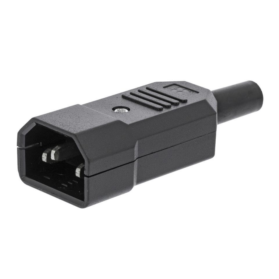 VDE C14 male three-wire steering wheel plug - black Screw connection
