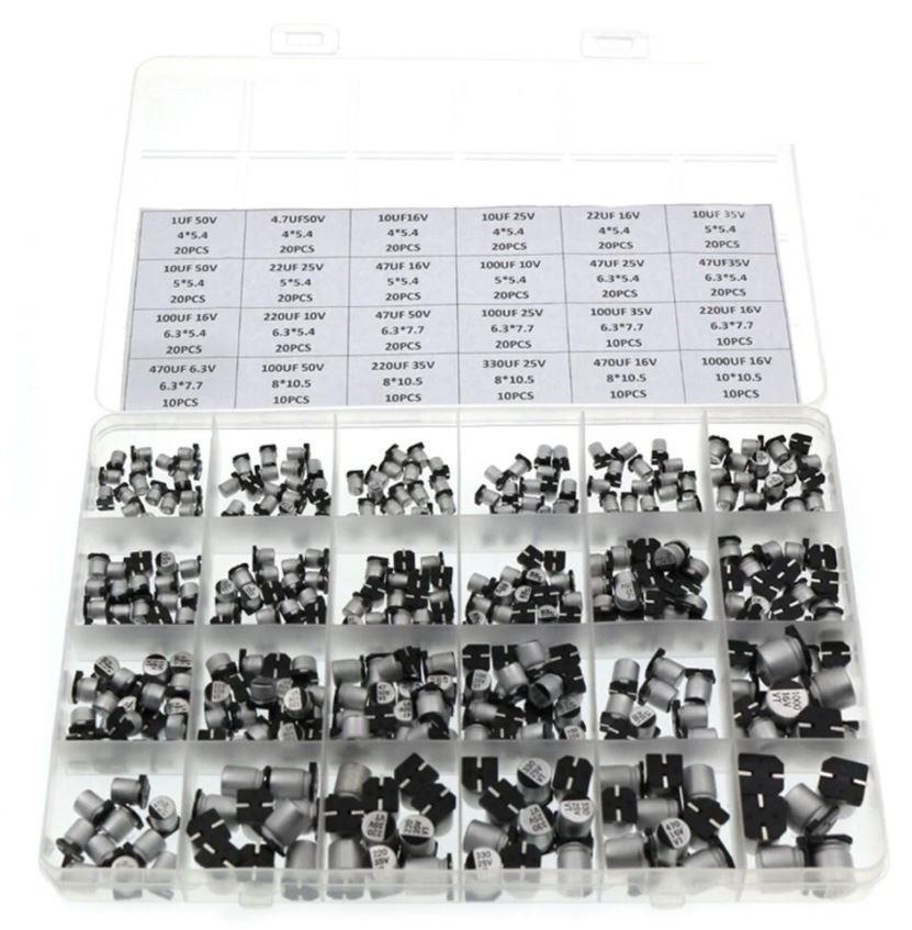 Aluminum electrolytic capacitor 1UF ~ 1000UF 6.3V-50V pack of 400 Electrolytic capacitors are electronic components commonly used by electronic professionals or amateurs when making circuits. Due to their very thin dielectric oxide layer and enlarged anodic surface, electrolytic capacitors have, by volume, a higher capacitance voltage product than other capacitors. These are high quality miniature electrolytic capacitors, generic for making circuits. Convenient and practical use, much appreciated by electronics enthusiasts and amateurs. This set includes 24 most popular types of capacitors which could meet your basic needs. Packed securely and assorted in a plastic box for convenient use and storage. Suitable for a wide range of electronic applications, good enough accessory for DIY. Specifications Packaging: plastic box Content: 400 pieces Dielectric: aluminum Capacity: 1uF ~ 1000uF Error: ± 20% Voltage range: 6.3V ~ 50V Frequency: low frequency Operating temperature: -40 ℃ ~ + 105 Temperature coefficient: -55 ℃ ~ + 175 ℃