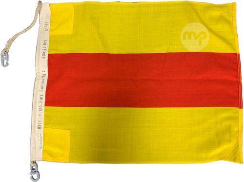 Numeric Flag Nautical Signaling "2" Original German Army product Fabric Rayon - Cotton - Linen non-discoloring Rope with hooks Dimensions: 60x50cm NATIONAL STOCK NUMBER (NSN): 8345-12-120-7101 NATIONAL ITEM IDENTIFICATION NUMBER (NIIN): 121207101 NSN DESCRIPTION: FLAGGE, SIGNAL FEDERAL SUPPLY CLASS (FSC): 8345 - Flags and Pennants CODIFICATION COUNTRY: Germany