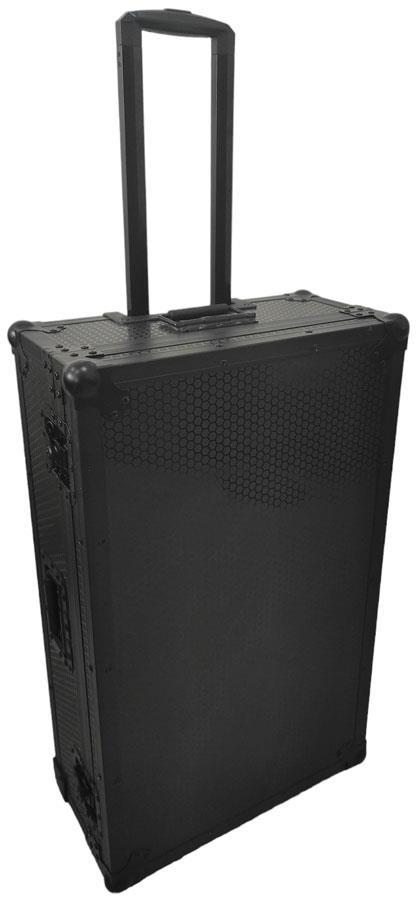 Flight case trolley nera universale 79.5x48x24cm Proteggete in modo pratico e sicuro i vostri cavi, stativi, effetti luce, materiali Pipe & Drape o altri apparecchi audio. L'interno del flight case misura 76.5x45x11cm: avrete a disposizione lo spazio sufficiente per una buona dose di cavi e materiali! Una volta collocate le vostre apparecchiature all'interno del flight case, potrete servirvi delle comode ruote e manico per spostarlo come se fosse un trolley.Le 2 maniglie renderanno il sollevamento del case una vera passeggiata.Le chiusure a farfalla garantiscono che il coperchio rimanga chiuso: la prudenza non è mai troppa con della preziosa apparecchiatura! Dimensioni Dimensioni escluse i piedini: 79.5x48x24cm Dimensioni inclusi i piedini: 80.5x48x24cm altezza con manico estratto 121cm circa
