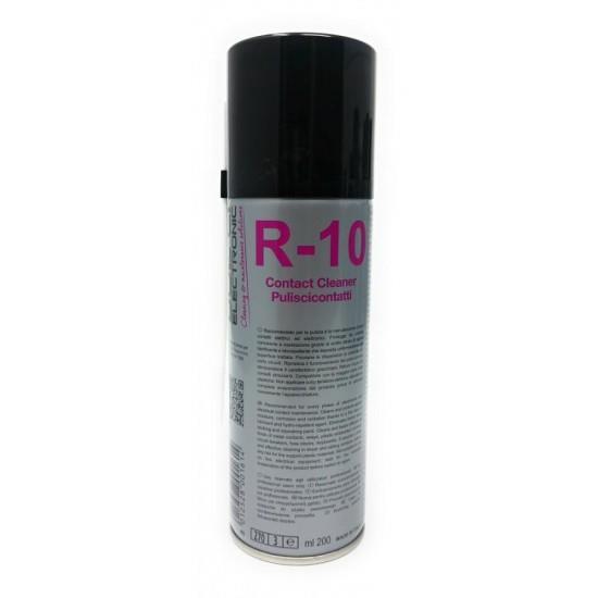 R-10 Contact cleaner 200 ml Recommended for cleaning and maintenance of all electrical and electronic contacts. Protects from humidity, corrosion and oxidation thanks to the thin layer of lubricating and water repellent agent that deposits evenly on the treated surface. Prevents current leakage and short circuits. Restores the operation of the potentiometers eliminating the characteristic croaking. Reduces the wear of the creeping contacts. Features DOES NOT DAMAGE THE OZONE RANGE DOES NOT CONTAIN CFC AND HCFC DOES NOT CONTAIN CHLORINATES COMPATIBLE WITH PLASTICS HIGHLY PROTECTIVE PROPERTIES "LUBRICANTS AND ANTI CORROSIVE 100% ACTIVE PRODUCT FILLED WITH NON-FLAMMABLE GAS DISPOSABLE DOUBLE USE : NEBULIZER + CANNUCCIA CAN BE ALSO USED EAN: 8012528 001614