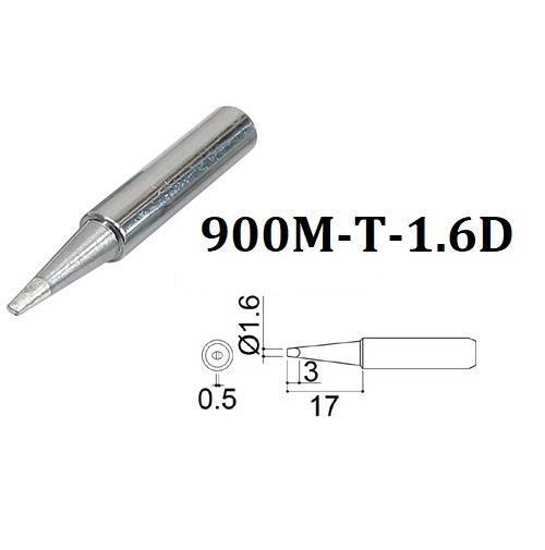 Replacement tip for 900M-T-1.6D soldering iron Compatible with soldering stations series 926, 936, 700, 701 Tip diameter 1.6mm Tip length: 17mm Base diameter: 5mm