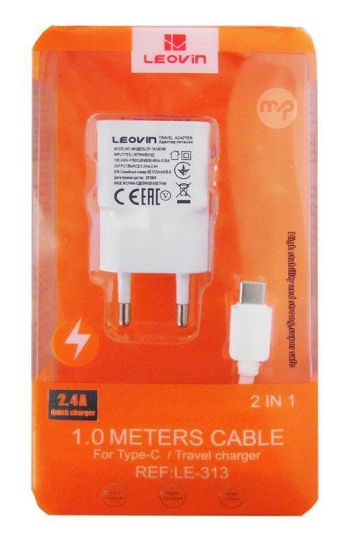 White wall socket + 1 meter Leovin type C cable Features White wall charger USB output x1 1 meter type C charging and sync cable EAN 6920160003137