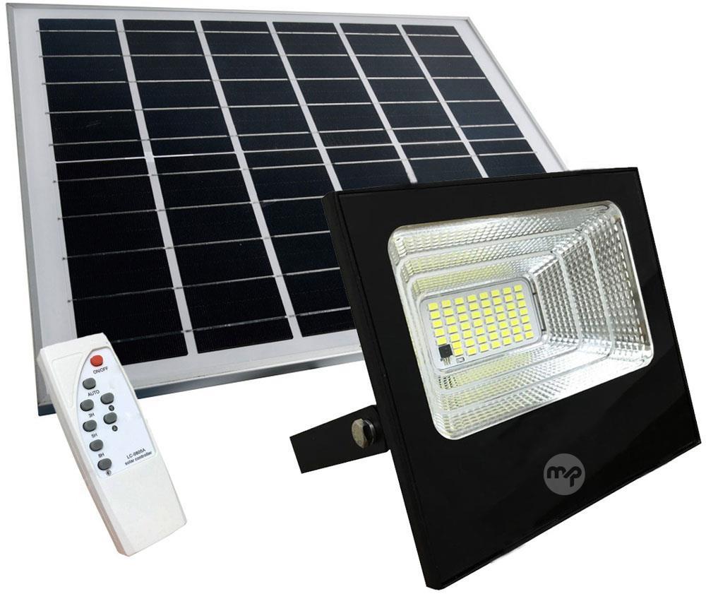 100W Dimmable LED Headlight Kit + IP67 Solar Panel Kit consisting of a latest generation solar-powered LED headlight. The LED lighthouse technology allows to store the electrical energy produced by the panel, guaranteeing 8h-10h of autonomy in the absence of direct solar energy. The lighthouse is equipped with a twilight sensor: it switches off in the presence of light and switches on in the absence of light. There is also the possibility of adjusting the intensity of the light through a convenient remote control, capable of controlling the lighthouse up to 15 meters away. The high degree of protection IP65, relative to both the panel and the projector projector, allows positioning in outdoor spaces, such as gardens, terraces, gazebos, sports fields, etc., or indoors. INSTRUCTIONS FOR DIMMING THE PANEL The remote control allows you to dim the light intensity of the projector, following 2 simple steps: 1. Press the button that allows you to activate the dimmer mode twice consecutively (if the projector switches off and then on again, it means that the dimmer mode is active) 2. Increase or decrease the intensity of the light by clicking on the arrows. Technical features Brand name: BOYBOY Power: 100 W Voltage: 10V DC Technology: SMD 2835 LED light intensity: 9000 lm Surrender: 1000w (compared to a halogen) Light temperature: 6500K Light beam angle: 120 ° Color Rendering Index: CRI 80 UgR: <19 Protection index: IP65 Materials: Metal, aluminum and glass Color (finish): Black Diffuser: Transparent glass Average duration: about 50,000 h Operating temperature: -10 ° c ~ 45 ° c. Certifications: CE and Rohs Efficiency class: TO LED features: Dimmabl Solar panel size 350x17x575 mm Projector spotlight size 325x270x85 mm Cable length of the solar panel about 3.5 m Manufacturer code BO-8100 (100W) Package Contents 1x headlight with bracket 1x photovoltaic panel 1x 3.5m cable to connect the panel to the projector 1x panel bracket 1x screw kit for installation 1x battery operated remote control (included)