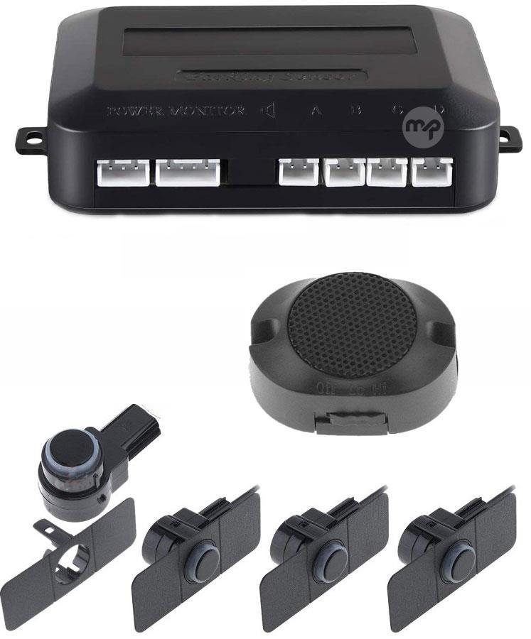 Kit of 4 parking sensors with horn Professional kit complete with 4 sensors with adjustable and / or deactivable acoustic warning device suitable for reversing maneuvers with a wide 2,5Mt maximum quality distance detection system. at 0Cm. Activation of the automatic system with the insertion of the reverse gear, 4 quality sensors for a complete coverage of the entire width of the vehicle, designed for all climatic conditions, sound alarm included, distance detection from 2.5 meters to 0cm. Parking sensors facilitate all parking maneuvers, even the most difficult reversing. They guarantee safe maneuvers by warning of the presence of people or animals or things. Parking sensors also detect invisible obstacles, avoiding costly repairs. No more bumps to park, therefore a safe help in any situation. Ideal for cars, vans, and any other vehicle.Approaching the obstacle is indicated by an intermittent acoustic / audible signal, the frequency of which increases as the distance from the obstacle decreases until it becomes continuous near it. These sensors are activated automatically when reverse gear is engaged and monitor your maneuvers step by step. Features Rated voltage: DC 12V. Working voltage: DC 9V-16V. Current: 20-200mA Ultrasound frequency: 40KHz Operating temperature: -30 ° C- + 70 ° C. Distance sensing: 0cm - 2.5m Double shielded sensors and wiring, quick release plug system. Self-test function Dual CPU chipset system with protective circuitry avoiding overheating or overloading It does not suffer radio interference from other wireless devices Antifreeze and waterproof material for a long service life EAN number: 8053323552031 Package contents 1 Adjustable audible buzzer with 5m cable. 4 16.5mm bumper wire SENSORS, 3Mt cable length. 4 Mounting brackets for sensors. 1 control unit. 1 x drill bit / cutter suitable for bumper holes. 1 user and installation manual.