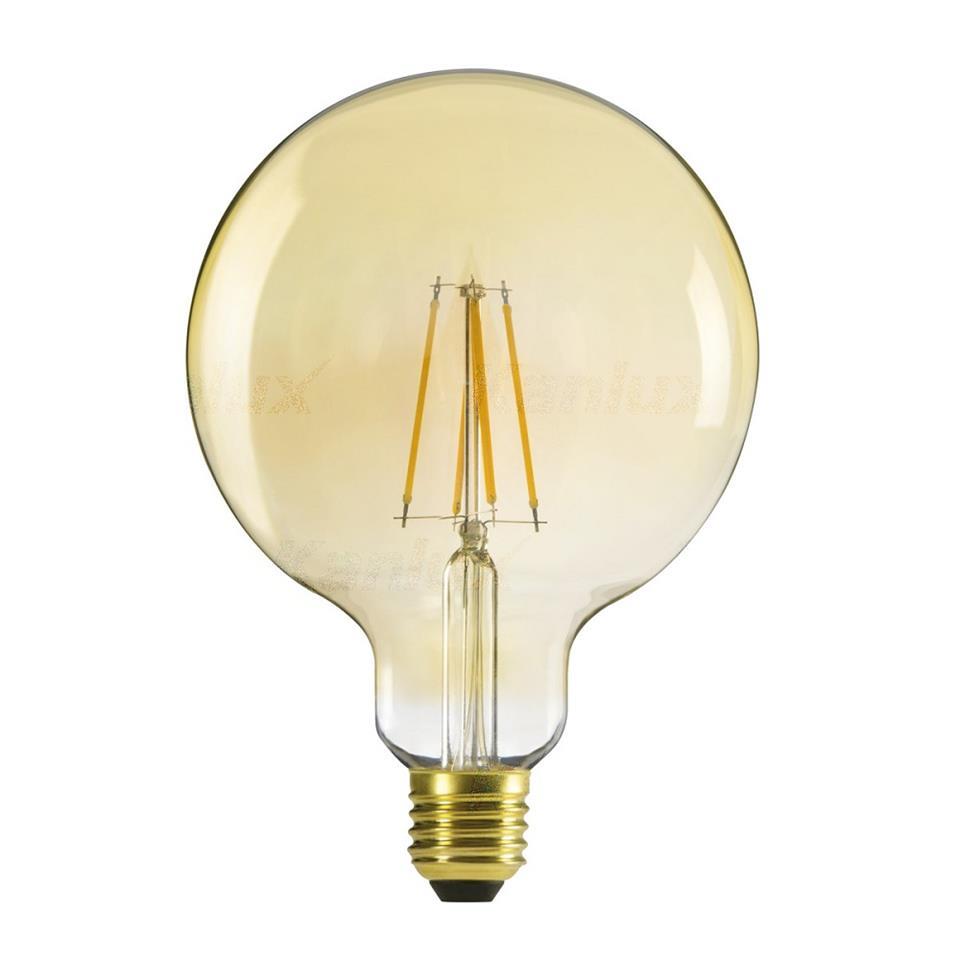 XLED led bulb G125 7W-WW E27 725lm 2500k Kanlux Kanlux XLED is synonymous not only with better lighting parameters, but also with greater decorativeness. Kanlux XLED G125 bulbs are distinguished by a large round glass bulb and wide lighting angle. Kanlux XLED G125 have a very pleasant look especially in combination with open or wall lamps, as well as with pendant lamps without shade. Background information EAN13: 5905339296382 Vendor code: 29638 Color: amber Speaker material: glass Weight and dimensions Height [mm]: 178 Width [mm]: 125 Diameter [mm]: 125 Depth [mm]: 125 Weight: 104g Energy class EEI light source: A + Technical data Rated voltage [V]: 220-240 AC Nominal frequency [Hz]: 50/60 Chip type: LED FILAMENT Nominal power [W]: 7 Annual energy consumption [kWh] / 1000h: 7 Rated lamp current [mA]: 58 Attack: E27 Total nominal luminous flux [lm]: 725 Efficiency [lm / W]: 104 Angle lighting [°]: 320 Nominal illumination angle [°]: 320 Power compliance statement [W]: 55 Color temperature [K]: 2500 Color uniformity[SDCM]: ≤6 Color rendering index Ra: 80 Light color: Warm white Number of on / off cycles : ≥15000 Resistance lamp rating [h]: 15000 Lamp power factor: 0.5 lumen maintenance factor of the lamp a end of life [%]: ≥70 Ignition time [s]: ≤0,5 Mercury content: no Warm-up time of the lamp to 60% of the total luminous flux [s]: negligible Lumen maintenance factor after 6000 hours [%]: ≥80 Lamp warm-up time to 95% [s]: <2 Lamp survival factor after 6000 hours [%]: ≥90 Early lamp wear indices : <5% po 1000h Dimerable: no Color: amber