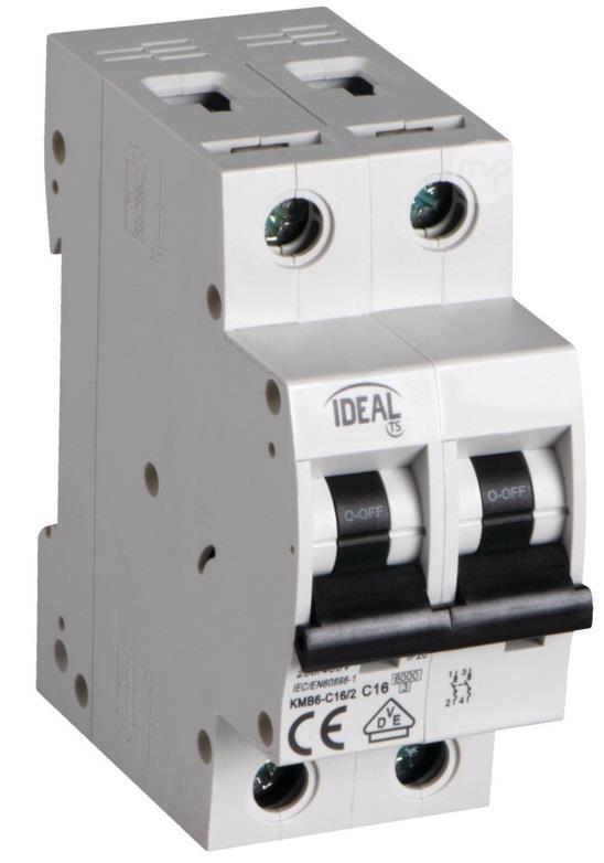 Kanlux 2P 16A circuit breaker Automatic circuit breaker: used for protection against overloads and short circuits. Complies with EN60898-1 standards. Characteristics Brand: Ideal by Kanlux Supplier code: 23178 EAN code: 5905339231789 Model: KMB6-C16/2 Weight and size Height [mm] 82 Width [mm] 35 Length [mm] 76 Weight 188g Technical data Rated voltage [V] 230 AC Nominal frequency [Hz] 50 Rated current [A] 16 Rated short-circuit current [A] 6000 Release properties C Energy limitation class 3 Modules 2 Application 2 IP 20 rating Sections of used cables [mm] 1÷25 Operating temperature [°C] 5÷40 PN-EN 60898-1 standards