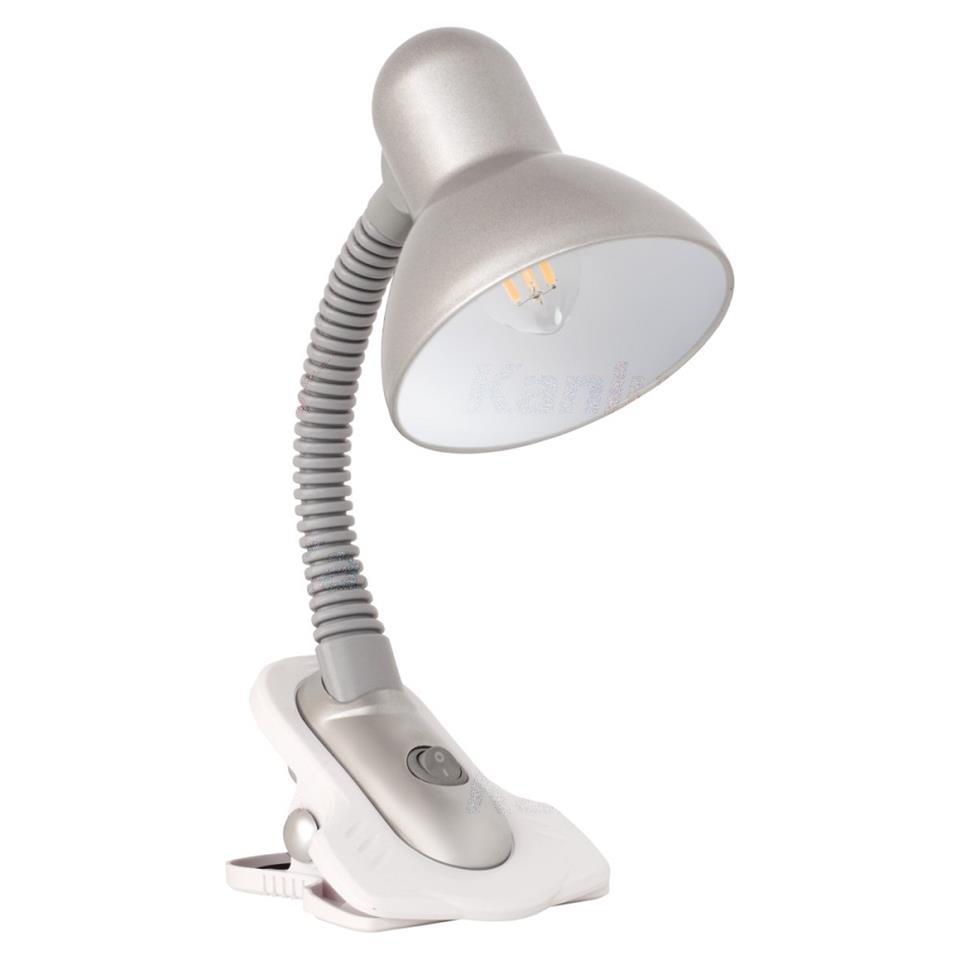 Desk lamp SUZI HR-60-BL gray Kanlux Kanlux SUZI is a simple desk lamp Kanlux SUZI is equipped with an adjustable arm and a clip that allows you to mount the lamp on the edge of the desk or on the shelf. Basic information EAN13: 5905339071507 Vendor code: 7150 Color: gray Body material: plastic material Speaker material: steel Place of use: inside Weight and dimensions Width [mm]: 137 Length [mm]: 117 Weight: 520g Technical data Rated voltage [V]: 220-240 AC Nominal frequency [Hz]: 50/60 MAX height [mm]: 190 Color: gray Maximum power [W]: max 40 Replaceable light source: yes Lamp included: no Degree of protection against electric shock: II IP degree 20 Minimum distance from the illuminated object: 0,2m Attack: E27 Mounting location: on surfaces such as a desk Horizontal movable ceiling light [°]: 360 Vertical mobile ceiling [°]: 360 The ceiling light is suitable for light sources of the following energy class: A ++, A +, A, B, C, D, E Cable length [mt]: 1.5 Switch yes Type of connection cable with a plug (terminal)
