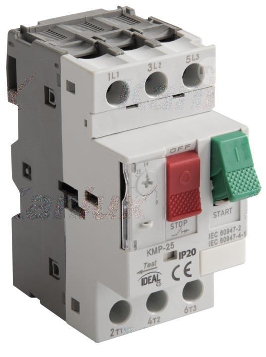 Motor protection circuit breaker KMP 400V 20-25A Kanlux The motor protection switch protects the three-phase motor circuits. It is possible to combine the accessories combined with the switches: auxiliary contacts, switches and a watertight cover. Background information Brand: Ideal EAN13: 5905339240736 Vendor code: 24073 Color: white Weight and dimensions Weight: 260g Technical specifications Color: white Rated operational voltage Ue [V]: 400 Rated insulation voltage Ui [V]: 690 Rated impulse withstand voltage Uimp [V]:6000 Type of connection: terminal block IP grade 20 Setting the overcurrent switch [A]: 20-25 Instant action switch [A]: 327 Thermal current lthe [A]: 25 Category of use: AC-3 Three-phase rated power - 230 / 240V [kW]: 5.5 Three-phase rated power - 400V [kW]: Three-phase rated power - 440V [kW]: 11 Three-phase rated power - 500V [kW]: 15 Three-phase rated power - 690V [kW]: 22 Mounting location: for binary TH35 Standards: PN-EN 60947-4-1, PN-EN 60947-4-1