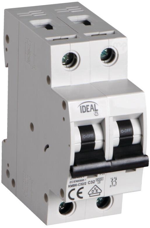 2P 32A Kanlux circuit breaker Automatic circuit breaker: used for protection against overloads and short circuits. Complies with EN60898-1 standards. Basic information Brand: Kanlux EAN: 5905339325884 Supplier code: 32588 Weight and size Height [mm] 82 Width [mm] 35 Length [mm] 76 Weight 194g Technical data Rated voltage [V] 230 AC Nominal frequency [Hz] 50 Rated current [A] 32 Rated short-circuit current [A] 6000 Release properties C Energy limitation class 3 Modules 2 Application 2 IP 20 rating Sections of used cables [mm] 1÷25 Operating temperature [°C] 5÷40 PN-EN 60898-1 standards Rated insulation voltage Ui [V] 500