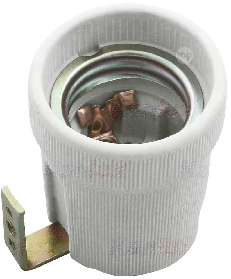 Lampholder E27 HLDR-E27-F Kanlux Basic information EAN13: 5905339021618 Manufacturer Part Number: HLDR-E27-F Colour: grey Weight and size Height [mm]: 47 Weight: 58g Technical data Rated voltage [V]: 250 AC Rated frequency [Hz]: 50/60 Colour: grey Rated current [A]: 4 Socket: E27 Maximum operating temperature [°C]: 180 Mounting method: "L" angle Type: E27 IP rating 00 Type of connection: terminal block