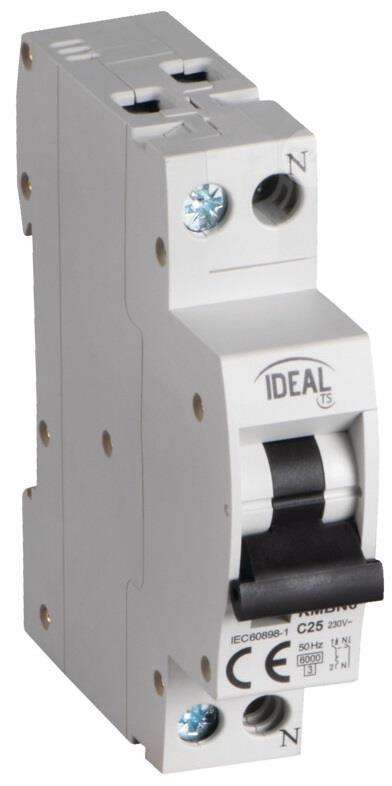 Kanlux 1P+N C25 25A thermal magnetic switch Automatic circuit breaker: used for protection against overloads and short circuits. Complies with EN60898-1 standards. Characteristics Brand: Ideal by Kanlux Supplier code: 32571 EAN code: 5905339325716 Model: KMBN6-C25/1 Weight and size Height [mm] 82 Width [mm] 17.5 Length [mm] 76 Weight 114g Technical data Rated voltage [V] 230 AC Nominal frequency [Hz] 50 Rated current [A] 25 Rated short-circuit current [A] 6000 Release properties C Energy limitation class 3 Modules 1 Application 1+N IP 20 rating Sections of used cables [mm] 1÷25 Operating temperature [°C] 5÷40 PN-EN 60898-1 standards