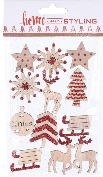 12 Red glitter wood stickers Adhesive wood with red glitter is a practical decorative element EAN CODE: 8719202 742169