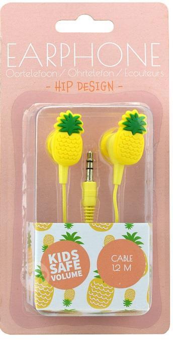 Earphones Kids Safe Volume Ananas Headphones suitable for the little ones, thanks to the volume control that avoids any harm to the children who use them. Features Frequency range: 18-20 KHz Impedance: 32ohm Sensitivity: 85dB Power consumption: maximum 100 mW Cable length: 1.2 m 3.5 mm jack EAN CODE: 8719987278327