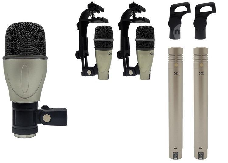 5 microphone kit for drums and music studio Each microphone was designed and tested to capture the natural tone of the drums. The microphone set consists of a drum microphone, 2 QD4 microphones and two QD2 condenser microphones (with sponges included), all microphones are supplied with a 3-pin male XLR connection. Included with this set are multi-position hoop clips and swivel mounts that allow for versatile positioning to ensure optimal sound. Each microphone has a durable, performance-tested mounting system that allows for optimal placement for installation. The models feature a swivel mount that is compatible with all standard microphone stands, while the QD4 microphones also include multi-position clips that securely attach to the edges of the drum.