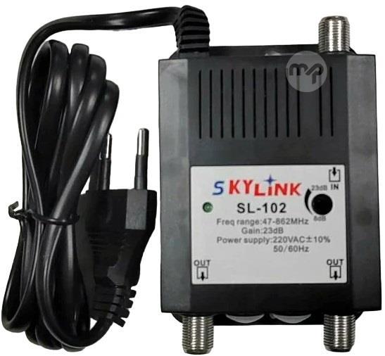 TV amplifier 2 outputs 47-862MHz 23dB The SkyLink SL-102 antenna amplifier is a high-quality device that provides stable and clear signal quality for your TV, it is specifically designed to improve signal reception from the antenna. It can improve the signal even in weak signal conditions, providing a stable and clear image on your TV screen. Characteristics Supplier code: SL-102 Brand: SkyLink Metal-plastic housing for internal installation Frequency range (direct channel): 47-862 MHz Gain: 23 dB Gain adjustment limits: 15 dB