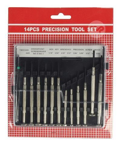 Screwdriver set 6x flat 2x PH 3x hexagonal 1x tweezers 1x driver 1x cross Accuracy 14-piece precision screwdriver set, contains: 6x normal 3,5 mm 3.0 mm 2,4 mm 1,8 mm 1,2 mm 0.9 mm 2 x traverse 2,4 mm 1.8 mm 1x tweezers 2,4 mm 1x driver 2,4 mm 3x hexagon 1,5 mm 2,0 mm 2,5 mm 1x traverse 2,4 mm Supplier Code: ASS-1606 EAN Code: 5412810200399