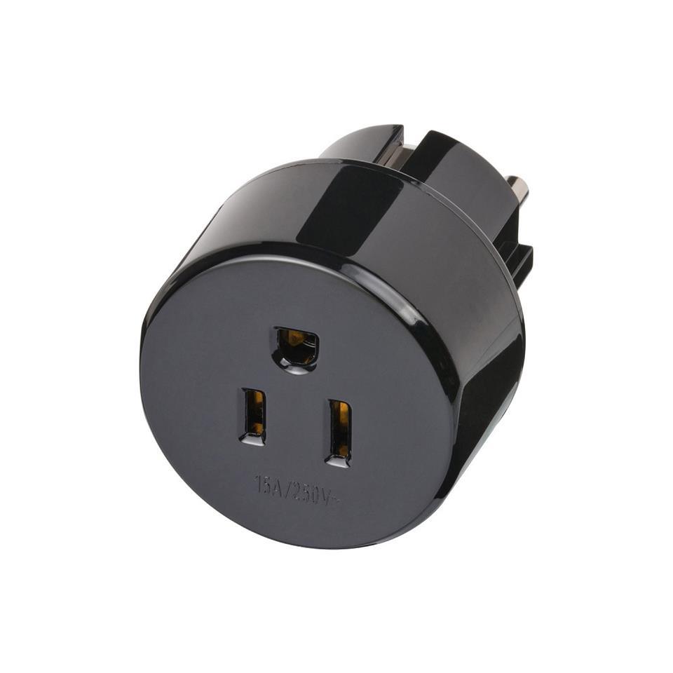 Travel Adapter USA / Japan-Europe-Earth Adapter that allows you to use electrical equipment that uses the US and Japanese grounded outlet system in countries that use an outlet system with grounding, e.g.DE, FR, BE, PL, NL, ES, PT, SE, FI, NO, GR, TR, AT ... This travel adapter is not a transformer or a frequency converter. Max. load: 15 A / 250 V Product specification Socket Schuko / Type F (CEE 7/7) USB connection No Fuse no Socket type USA / Japan Current 15 A Supplier Code: 1508520 EAN code: 4007123170722