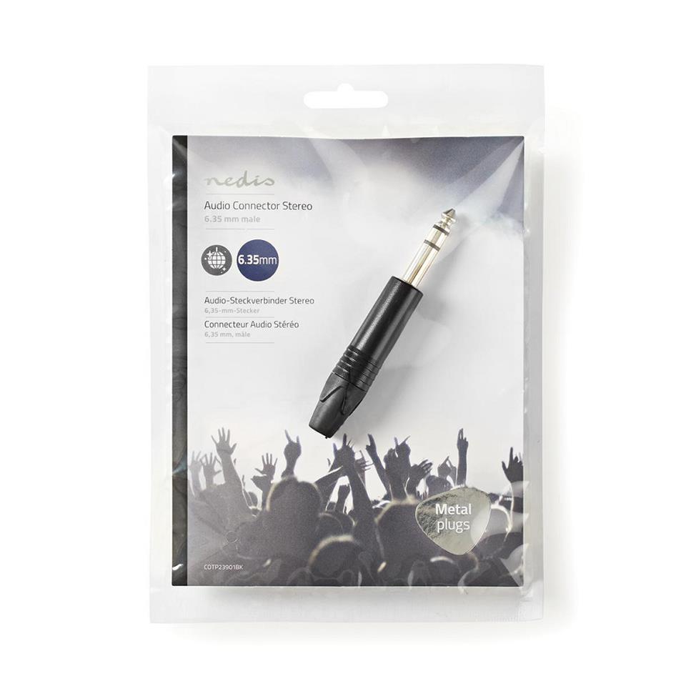 6.35mm Male Stereo Audio Connector Durable die-cast zinc connector for stable connection Specially designed for amplifiers , musical instruments and microphones Product specifications Color: black Materials: metal Content: 1 pz Connection A: 6.35mm male Connector design A: straight Packaging: Plastic bag Connector type: 6.35mm male Connection A & B: 6.35mm male