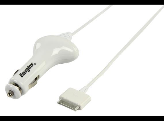 1.0A / Apple 30 pin car charger Load your Iphone or Ipod in your car! With an output power of 5 Watts (1 Amp), this car charger allows fast and safe charging of your compatible devices. Technical specifications Energizer EZ-APCL01. Loader type: Auto. Loader compatibility : MP3, MP4, Smartphone, Tablet. Power supply type: Cigar lighter. Product color: White. Cable length: 1.2 m. Input voltage: 12 - 24, Output voltage: 5 V. AC output power adapter: 1 A SUPPLIER CODE: LCHECCCIP6 EAN CODE: 3492548113354