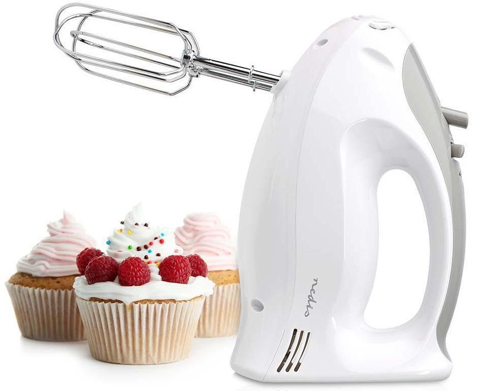 200W blender 5 speed turbo function 2 Beaters / 2 Dough Hooks Cooking becomes child's play with this elegant Nedis© mixer. Whether you want to bake biscuits, cakes or pastries, with this mixer you can prepare any type of recipe thanks to the 5 speed settings and the turbo function. The eject button allows you to assemble or remove the whisks or dough hooks in a very simple way. The whisks and dough hooks can be washed in the dishwasher and are therefore easy to clean. Functions 200 W 5 speed settings and turbo function Eject button to release the supplied whips and dough hooks Package contents Mixer Pair of whips and dough hooks Quick Start Guide Product Specs Color White and Gray Socket Euro / Type C (CEE 7/16) Dishwasher safe No Input voltage 220 - 240 VAC Maximum absorption 200W Material Plastic and steel Turbo function yes Speed settings 5-speed setting Included accessories 2 Beaters 2 Dough Hooks Power cord length 1.05 m Stand function No Power 200 W Supplier Code: KAHM100CWT EAN code: 5412810330218