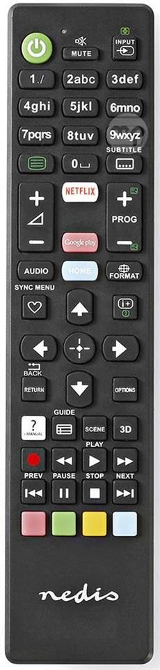 Replacement remote control for Sony TV pre-programmed Replace a lost or broken Sony remote control with this Nedis pre-programmed TV replacement remote control, which is compatible with all Sony TVs.Thanks to an extensive built-in code database, the remote control has all the functions of the original version.The Nedis replacement remote control is simple to use as it requires no programming.Just insert the batteries and it's ready to go. • Extensive code database to replace all functions of the original remote • Maximum comfort in your hands • Pre-programmed, ready to use • Learn button; In learning mode, press the button to activate the signal before copying functions from other remotes. • Works with all Sony TVs from 2012 onwards Product Specifications Length 45mm Height 26mm Depth 208mm Weight 77 g Color Black Materials ABS Rubber Power type Battery powered Code entry Fixed Remote type Replacement remote control Transmission technology Infrared Suitable devices TV Suitable for sony Input voltage 3V DC Remote control functionality Netflix Button Youtube Amazon Prime Button Batteries required (not included) 2x AAA/LR03 Number of products in the package 1 pc. Number of devices 1 Device Supplier Code : TVRC41SOBK EAN code : 5412810322695