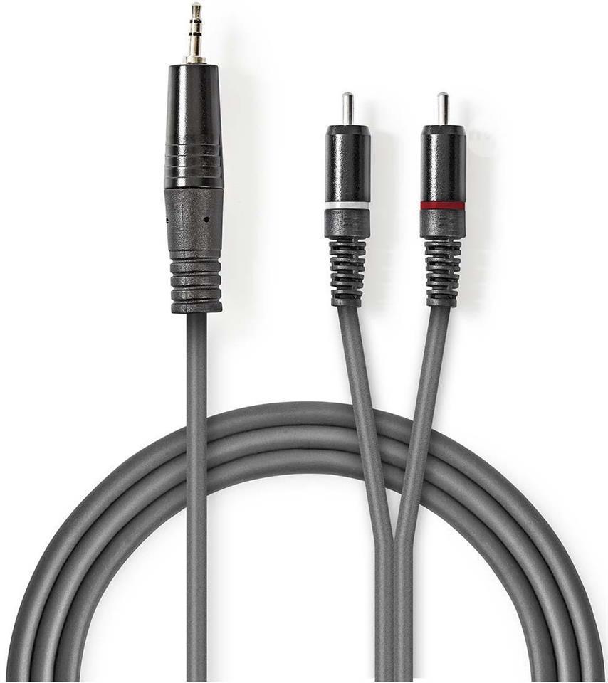3.5mm male-2x male RCA stereo audio cable 1.5m Connect musical instruments, microphones, amplifiers and DJ equipment together with this Nedis® 3.5mm to 2x RCA audio cable. Specially designed for use in the music industry, this audio cable delivers excellent performance every time. Functions • Durable die-cast zinc connector for a stable connection • Highly flexible cable for easy twisting • Ideal for amplifiers, musical instruments and microphones Product Specifications Connector design - side B Straight Connector design - side A Straight Hollow design Round cable jacket material PVC Cable length 1.5m Connector plating Plated nickel Connector material Aluminum Materials PVC Conductor material Bare copper cable Type of audio Stereo Connector A 3.5mm male Cable type 3.5mm-RCA Connector B 2x RCA male Conductor diameter 40 x 0.12 mm Color Dark gray Type of packaging Cardboard case Cable jacket size 10.0 x 5.0 mm AWG value 20 Supplier Code: COTH22200GY50 EAN number: 5412810295227
