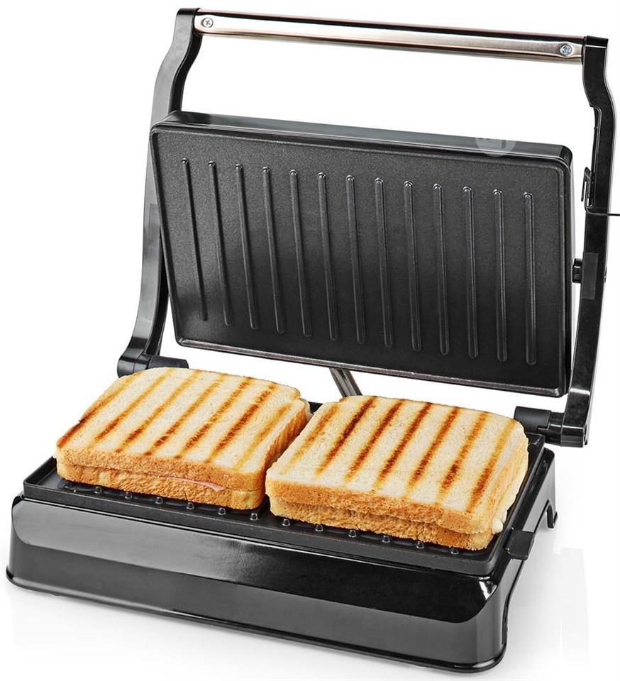 Grill 700W 23x14.5cm Grill perfect sandwiches with this Nedis contact grill. The contact grill heats up quickly thanks to the power of 700 watts. The status and temperature indicators indicate exactly when the contact grill is ready for use. The floating hinge system allows larger foods to be cooked evenly, preventing them from being crushed. The non-stick coating of the grill plates ensures quick and easy cleaning. The contact grill features an integrated cool touch handle designed for safe use and perfect storage, as it allows the grill to be closed completely. The non-slip feet ensure that the contact grill is always stable. The aluminum design of the contact grill creates a modern look in any setting. • Powerful 700 Watt contact grill• Plate size 23 x 14.5 cm• Cool touch handle for safe use• Floating hinge system for larger items• Power and temperature ready indicator• Easy to clean non-stick plates• Feet non-slip for stable cooking Product Specifications Length 267 mm Height 86 mm Depth 220 mm Weight 1320 g Color Nero Argento Materials Aluminum Plastic Power outlet Type F (EEC 7/7) Number of products in the package 1 pc. Energy indicator Yes Automatic temperature control No Device Food preparation Size grill plate 23 x 14.5 cm Food ready indicator No Power 700W adjustable temperature control No Supplier Code : KAGR111FSR EAN code : 5412810398836