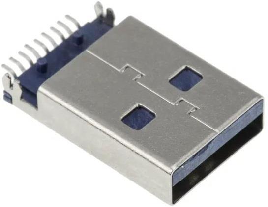 Connettore USB 3.0 maschio a saldare TIPO DESCRIZIONE Categoria Connettore USB maschio Tipo di connettore USB-A (USB TYPE-A) N. di contatti 9 Genere Spina Specifiche USB 3.2 Gen 1 (USB 3.1 Gen 1, Superspeed (USB 3.0)) Tipo di montaggio Montaggio superficiale ad angolo retto Caratteristica di fissaggio Orizzontale Terminazione Lega per saldatura Caratteristiche Guida scheda, blocco scheda Temperatura di funzionamento -20°C ~ 85°C N. di porte 1 Corrente nominale (A) 0,25 A, 1,8 A Tensione - Nominale 30V c.a. Cicli di accoppiamento 5000 Schermatura Schermato Materiale guscio/schermatura Acciaio Classe di infiammabilità del materiale UL94 V-0 Colore isolante Blu