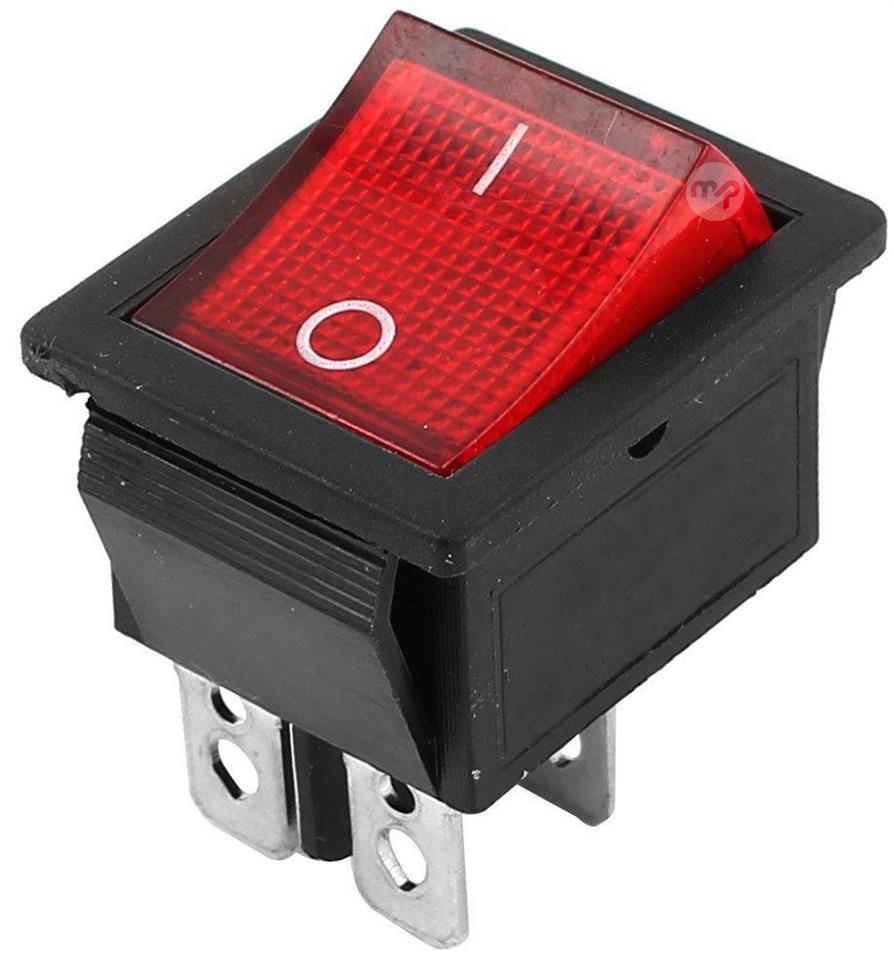 Rocker switch 16A 250VAC 20A 125VAC KCD4 Features Switch type: Rocker switch Model: KCD4 Switch type: DPST Number of contacts: 4 pins Operation: On-Off Mounting Type: Snap In Panel Mount Voltage / current: AC 250V / 16A 125V / 20A Product width: 32mm Overall height: 28mm Height excluding contacts: 18mm Color: red Weight: 51g