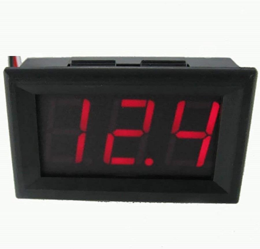 Digital voltmeter red led display DC 0-30V 3 wires Features Reverse link protection. Measurement range: DC 0.00 V - 30.0 V. Power supply: DC 4.50V-30.0V Accuracy: ± 1%. (when ≥10 V, ± 0,3 V, when <10 V, ± 0,1 V ) Input impedance: > 100 KΩ Maximum working current: 23mA Refresh rate: about 300mS / times. Display: 0.56" dual digital tube ". Operating temperature: -10 ° C - 65 ° C Materials and dimensions Material: PCB LED color: red Dimensions: approx. 48x 29x 22mm Open hole: approx. 46 x 27 mm