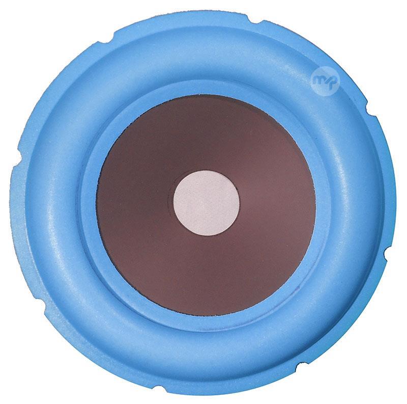 Spare cone with foam suspension for 254mm woofer - blue Characteristics Overall height: 7cm Hole diameter 5cm Cardboard cone height 5.6 cm Suspension height 1.4 cm