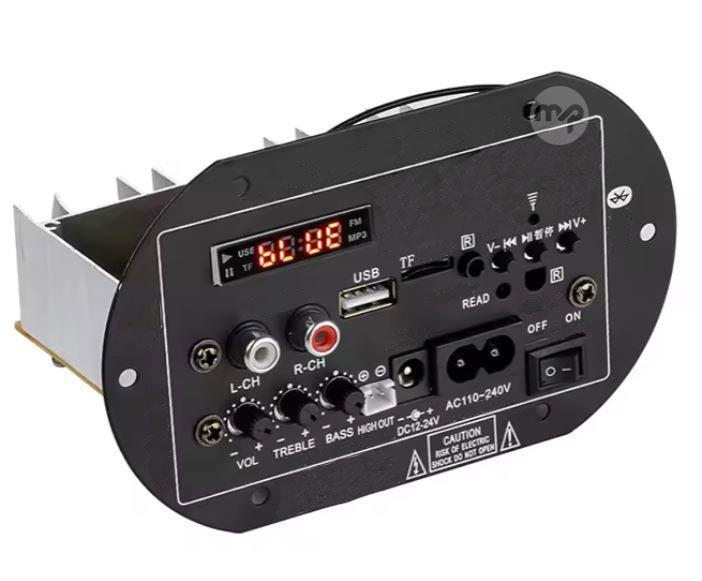 Modulo amplificatore 200W con Bluetooth/USB/SD Progettato per offrire un'esperienza audio eccezionale con versatilità e facilità d'uso. Potenza di Uscita di 200W Con un'uscita di 200 watt, questo amplificatore garantisce un suono potente e cristallino, capace di riempire qualsiasi ambiente con una qualità audio superiore. Connettività Bluetooth Integra la tecnologia Bluetooth per una connessione wireless rapida e stabile. Collega facilmente il tuo smartphone, tablet o altro dispositivo Bluetooth per riprodurre la tua musica preferita senza cavi ingombranti. Porte USB e Slot SD Dotato di ingressi USB e slot per schede SD, questo modulo permette di riprodurre direttamente i tuoi file audio digitali da chiavette USB o schede SD, offrendo un'opzione di ascolto flessibile e conveniente. Specifiche Tecniche Potenza di uscita: 200W Connettività: Bluetooth, USB, SD Alimentazione: AC 220-240V o DV 12V-24V Cavo di alimentazione 220V con spina europea incluso Connettore di alimentazione DV12-24V incluso Risposta in frequenza: 20Hz - 20kHz Ingressi audio: Stereo RCA