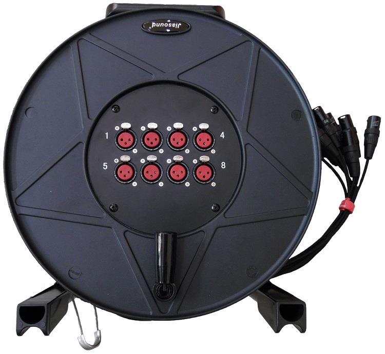 Stagebox extension strip 8 stage XLR - 30 meters 8-channel, 8 XLR inputs, length: 30 m Color: Black, flexible and robust outer sheath sturdy cable reel