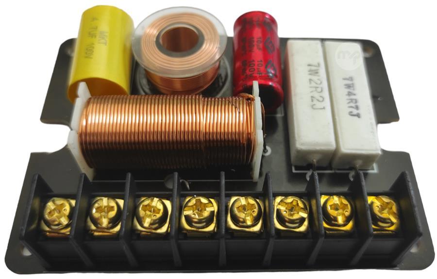 150W 2-way crossover filter Characteristics Board size: 9.5x7cm Dimensions with stand: 11.5x9cm Terminal Block Connections: IN+ IN- / +3dB 0dB -3dB / TW- / WF+ WF- Terminal block with 8 connections