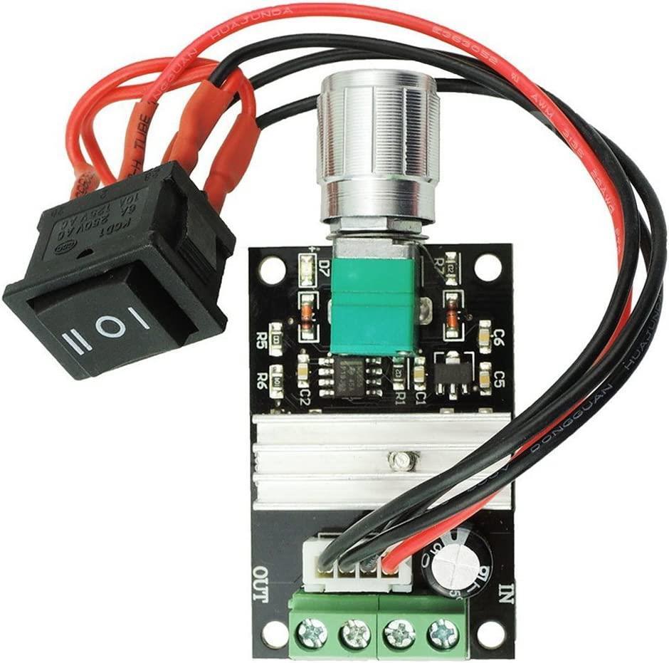 6V 12V 24V 28V 3A 80W Switch PWM Speed Controller The 1203BB DC Motor Speed Controller controls the speed of a Pulse-Width-Modulated (PWM) regulating DC motor. Provides 3A continuous current for DC motor or other DC load. Also, the circuit includes a 3A fuse. Characteristics Material: metal. Size: 5*3.2*1.5cm. Input voltage range is DC 6-28V. Potentiometer with function switch. Switch cable length: 15cm. 3 position switch: 0-1-2