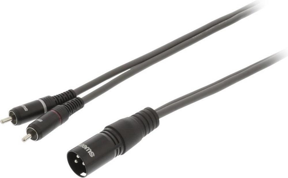 Sweex 10m XLR 3 pin male - 2x RCA male stereo audio cable Connect musical instruments, microphones, amplifiers and DJ equipment with this Sweex XLR-RCA audio cable. The audio cable is designed specifically for use in the music industry, delivering excellent product performance time after time. Characteristics Conductor material: copper Connection A: Male 3-pin XLR Connection B: 2x RCA male Connector design - side A: straight Connector Design - Side B: Straight Diameter: 5.6 x 2.8mm Colour: dark grey Length: 10.0m Outer material: PVC Cable Type: XLR EAN code: 6017439579582Supplier code: SWOP15200E100