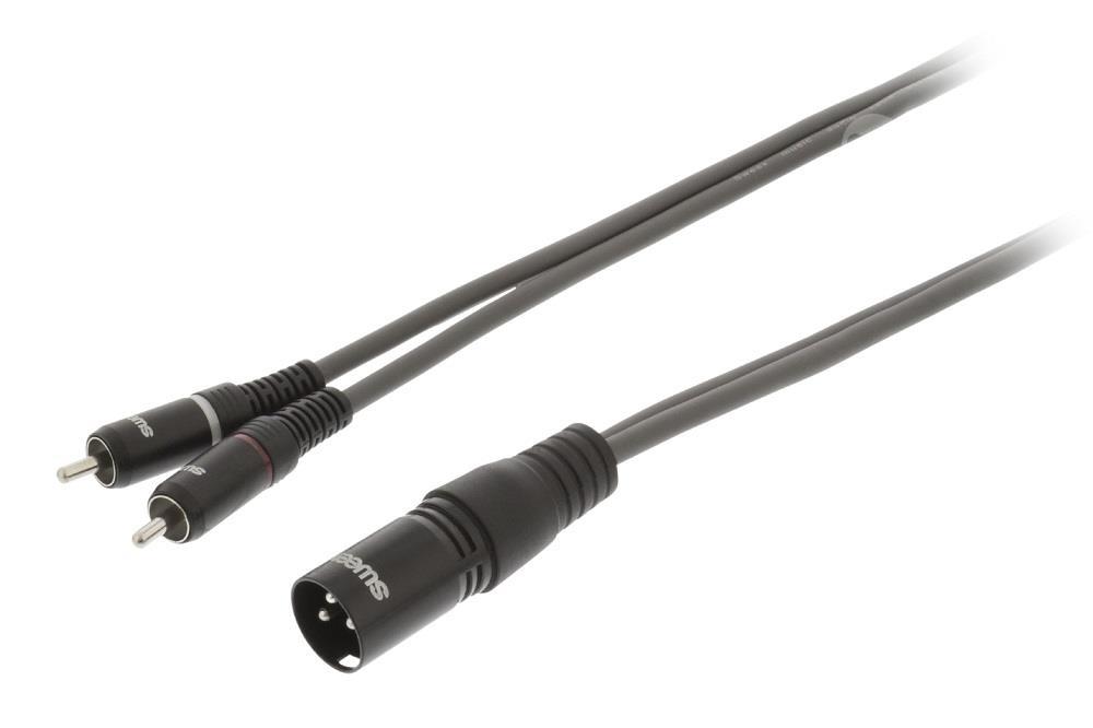 Stereo Cable XLR 3p (M) - 2x RCA Male 5m Dark Grey Interconnect musical instruments, microphones, amplifiers and DJ equipment with this Sweex XLR to RCA audio cable. Designed specifically for use in the music industry, this audio cable delivers excellent performance every time. Functions • Durable die-cast zinc connector for a stable connection • Highly flexible cable for easy twisting • Ideal for amplifiers, musical instruments and microphones Product Specifications Outer material PVC Conductive material Copper Plating Nickel Connector design - A side Straight Connector design - B side Straight Link B 2x RCA Male Link A XLR 3p (M) Cable type XLR Color Dark gray Packaging Cardboard case Diameter 5.6 x 2.8mm Length 5.0m Connection A & B XLR 3p (M) - 2x RCA Male Supplier Code: SWOP15200E50 EAN code: 8717534024236