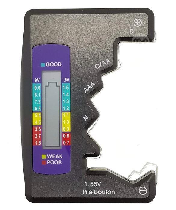 Digital tester with LCD display for batteries It does not support the detection of rechargeable batteries and carbon-zinc (R) batteries. Characteristics Material: ABS Black colour Dimensions: 92 x 63 x 14mm Easy to read: LCD graphic display C, AA, AAA, D, N, 9V (6F22) and 1.5V batteries 9V: PP3, MN1604, 6F22, 006P 1.5V: AAA, HP16, MN2400, R03 AA, HP7, MN1500, UM3 C, HP11, MN1400, SP11, LR14, UM2 D, HP2, MN1300, SP2, R20, UM1 It doesn't need batteries to work