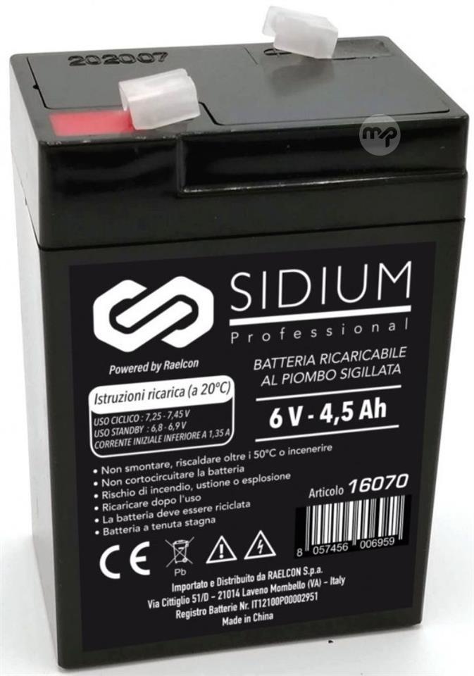 Rechargeable Battery al Piombo 6V 4.5AH - Sidium