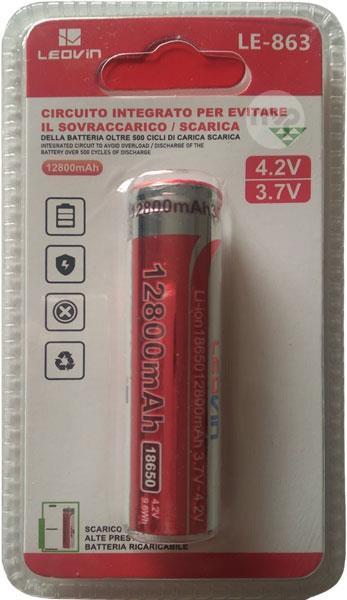 Rechargeable battery 4.2V 9.6Wh 12800mAh Characteristics EAN code: 6920160008637 Supplier code: LE-863 Charging voltage: 4.2V Discharge voltage: 3.7V Battery capacity: 12800mAh Power: 9.6Wh Battery type: rechargeable 18650 With flattened pole h 12800mAh Caratteristiche Codice EAN: 6920160008637 Codice fornitore: LE-863 Tensione da carica: 4.2V Tensione da scarica: 3.7V Capacità batteria: 12800mAh Potenza: 9.6Wh Tipologia batteria: ricaricabile 18650 Con polo schiacciato