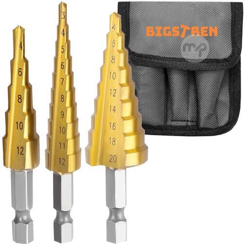 3 piece conical drill bit set HHS STEEL - TITANIUM COATED - the drill bits are durable, they are made of high-speed HHS steel, which is strong and durable, thanks to which they are perfect for drilling holes, e.g. made of PVC, thin-walled sheets and even metal. The product does not require prior drilling READABLE NUMBERING - the cutters are stepped, each of them has a numbering. It is perfectly readable, thanks to which we can easily drill a hole of the desired width. The set includes three drill bits for making holes of different sizes. ONE BIT FOR MANY HOLES – conical drill bits are composed of interconnected metal discs of increasing diameter. Thanks to the many different stages of the drill, it is possible to drill holes of different diameters with just one bit. CONVENIENT BAG - the set is stored in a practical case, which greatly facilitates the storage of drill bits, and is also useful when transporting them. Tips stored in the case do not collide or get damaged. Characteristics EAN code: 5902802909640 Supplier code: 0000666 Material: bearing steel, titanium coated; used for: Plastic, wood, iron, aluminium, nylon pin: 6 mm Tip dimensions 4 - 12mm: 4; 6; 8; 10;12 3 - 12mm - 3; 4; 5; 6; 7; 8; 9; 10; 11; 12 4 - 20mm - 4; 6; 8; 10; 12; 14; 16; 18; 20;