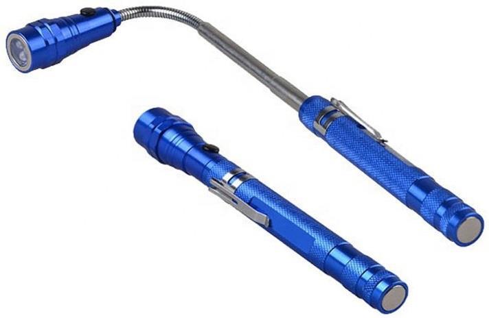 Telescopic LED lamp extendable 56cm with magnet various colors Telescopic aluminum lamp with 100 hours of LED light. Features 3 Ultra bright LED. Extendable up to 56 cm. Flexible and magnetic tip to collect objects with a maximum weight of 1 kg. Magnetic base to be hooked onto metal parts EAN number: 8715986122791 Supplier code: 12279