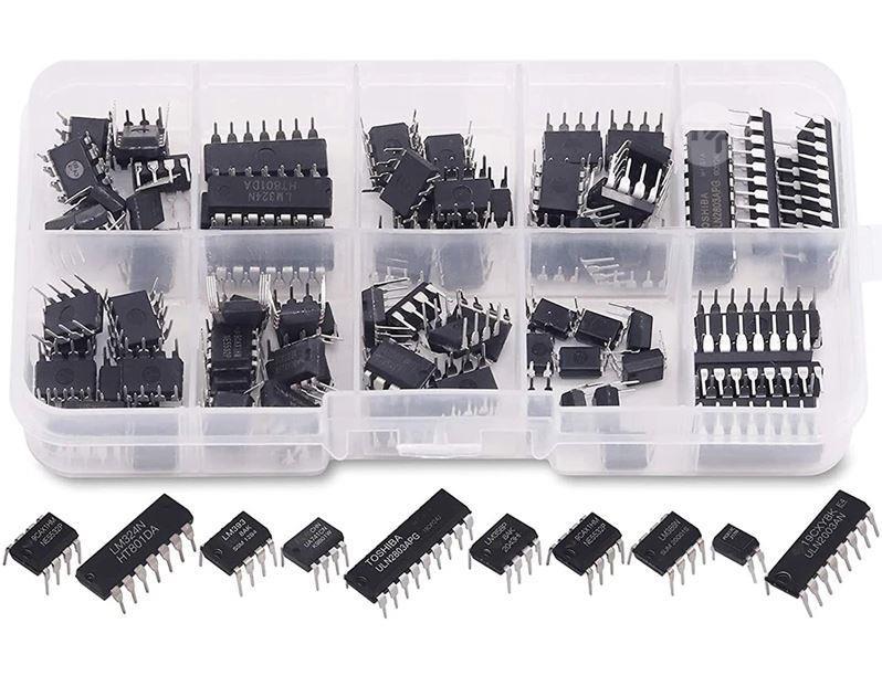 Kit 85 integrated circuits 10 models The kit contains the most popular integrated circuits. Useful in case of do-it-yourself repairs Kit content 10 * NE555 5 * LM324 10 * LM393 10 * UA741 5 * ULN2803 10 * LM358 10 * LM386 10 * NE5532 5 * ULN2003 10 * PC817