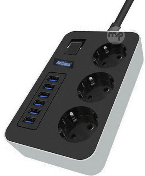 Power strip with switch 3xSchuko 6xUSB 3.1A 3000W Q-PC6 Easy-to-use European power strip, ideal for home or business environments. Socket that can intelligently identify various electrical appliances and automatically distribute the current. With child safety door, multiple protection thanks to the designed safety jack cover . Features Model: Q-PC6 EAN code: 7890052117350 Dimensions: 23 x 11 x9 cm Cable length: 2 m Maximum input current: 2-5 A Input voltage: 220V Output voltage: 220V Power: 3000 W USB X 6 Sockets x 3 USB output current: 3.1A Color: black and white
