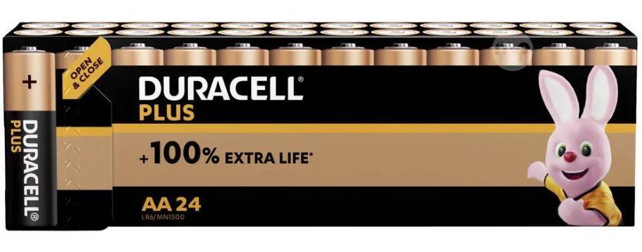 AA alkaline/manganese battery 1.5V pack of 24 Duracell offers a wide range of batteries for use in electronic devices that require reliable power. Duracell Plus AA batteries are alkaline batteries excellent for powering all everyday devices. Duracell Plus AA gives you up to 100% more power, compared to the minimum average duration of IEC 2015 tests when using a digital video camera; results may vary depending on device and type of use, IEC website,. Unused Duracell batteries last up to 10 years if properly stored in their packaging. Duracell recommends the use of these batteries in everyday devices, such as digital cameras, photoflashes, toys, portable stereos; and they are also great for other commonly used devices such as flashlights, game controllers, razors, electric toothbrushes and more. Duracell Plus Power delivers reliable performance and long-lasting power in a wide range of everyday devices. You can count on Duracell Plus to power your remote controls, flashlight, alarm clock, radio and more. Characteristics Brand: Duracell EAN code: 5000394141322 Battery type: AA, pen Voltage : 1.5V Height : 50.5mm Diameter : 14mm Alternative designations: LR06 / AA / LR6 / AAB4E / AM3 / M / MN1500 / 815 / E91 LR6N Not rechargeable