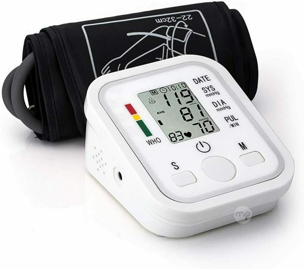 Automatic digital sphygmomanometer arm blood pressure monitor Brand new blood pressure monitor, suitable for medical offices but also for home use, fast and accurate measurement of blood pressure and heart rate. Large, clear, easy-to-read LCD liquid crystal display Ideal for daily blood pressure monitoring This blood pressure monitor always inflates the cuff to peak pressure which is tailored to your blood pressure level, ensuring a simpler and more accurate measurement. Extremely Accurate MULTIPLE READINGS - Measurement of systolic, diastolic, pulse and heart rate all displayed clearly on the digital liquid crystal display which is easy to read and understand. It can store up to 99 memory groups. When the memory button is pressed it will first show the average of the last 3 readings, The measured value of EVERY single test can be viewed by pressing the button in sequence Technical features EAN number: 6920201126863 Supplier code: 869 Display: liquid crystal digital Measurement Method: Pulse Scan / Oscilloscope Dosing Measuring range: hypertension / hypotension: 40mmHg - 280mmHg Pulse: (40 to 199) beats / min Accuracy: ± 3mmHg (± 0.4kPa) Resolution: 0.1 kPa (1 mmHg) Voltage: 6V Consumption: 0.01W Weight: 220g Dimensions: 115 x 96 x 59 mm Usage 1 Relax before taking the measurement, sit down 2 Palms up, place the band parallel to the heart 3 Palms always facing up, insert the tube parallel to the arteries 4 Wrap the band around your arm, tight, in the opposite direction, 5 Place a finger inside to check the right position 6 Maintaining a relaxed position and palms up Press the ON / OFF button