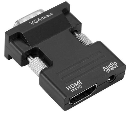 HDMI / Jack 3.5mm to VGA adapter High quality HDMI female to VGA male converter with audio adapter Signal output support 1080P Features Video input: HDMI female Audio input: JAck 3.5mm audio Video output: VGA Audio jack cable included