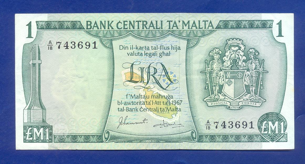 MALTA 1973 1 LIRA SIGNED SAMMUT / DEGABRIELE IN EXTRA FINE CONDITION.